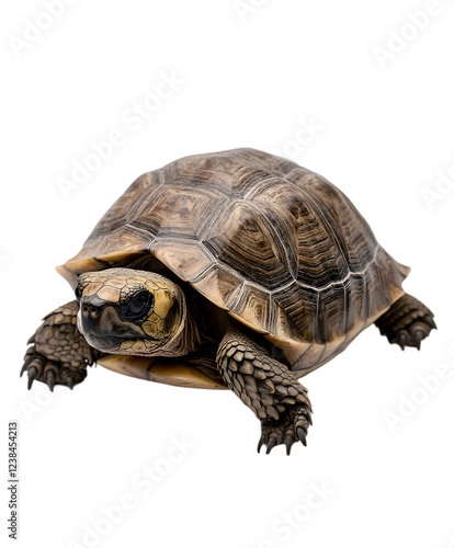 © Zape, Obraz premium A small turtle with a patterned shell, resting comfortably on a white surface. Transparent background