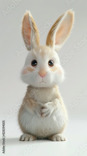 © PLATİNUM, Obraz premium A small white rabbit is seated in front of a white backdrop