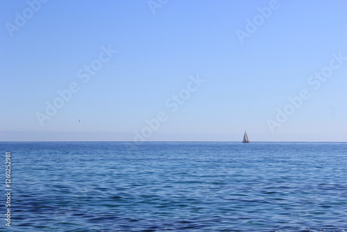 © Kateryna, Fototapeta premium a small white sail boat went out to sea on a clear sunny day