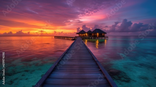 © evening_tao, Obraz premium A small wooden bridge over a beautiful sea
