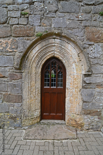 © parkerspics, Fototapeta premium A small wooden door, in a stone church wall
