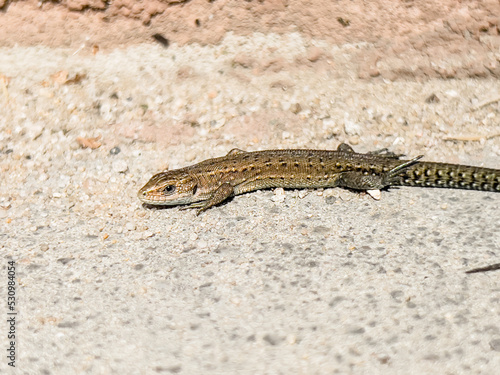 Naklejka premium A small young lizard basking in the sun.