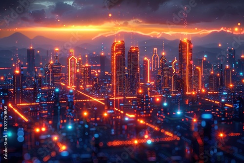 Fototapeta premium A smart city hotel where AI customizes your stay, from room temperature to recommended