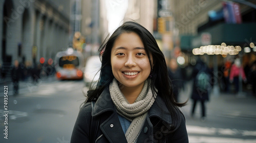 © ANC Media, Fototapeta premium A Smiling Asian Woman Captures the Spring Spirit