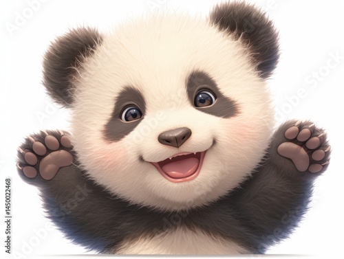 © Fridocha, Naklejka premium A smiling baby panda with its arms raised. It has cute features and soft fur