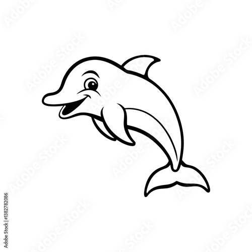 © MDAriful, Fototapeta premium A smiling Dolphin jumping out of water line art