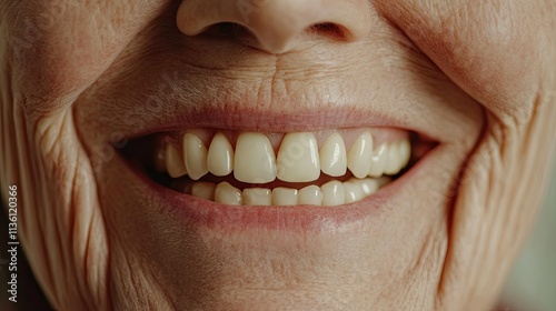 © Suphawan, Obraz premium A smiling elderly person with perfectly fitted dentures, representing oral health for seniors