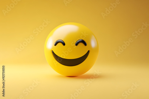 © AungThurein, Fototapeta premium A smiling emoji in 3d render with a pastel yellow background