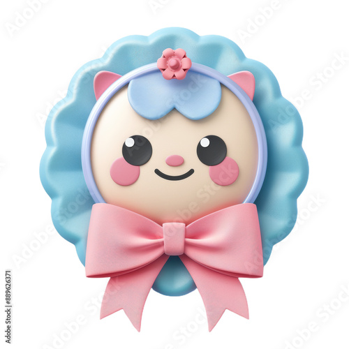 Fototapeta premium A Smiling Face on a Blue Ribbon Badge