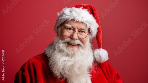 © Andrei, Naklejka premium A smiling man in a Santa hat and glasses