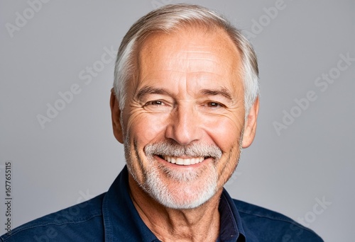 © Aimar, Fototapeta premium A smiling older man in a blue shirt.