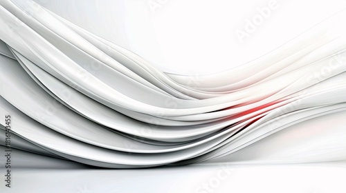 Obraz premium A smooth, flowing abstract design with multiple white, layered waves creating a sense of motion. A small, bright red accent highlights a central point within th
