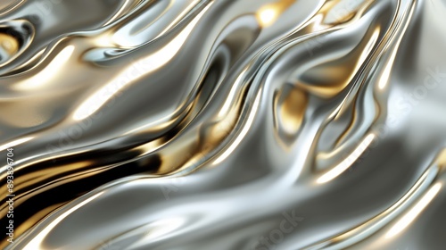 © Darya, Obraz premium A smooth, flowing background featuring metallic silver and gold swirls in an abstract pattern
