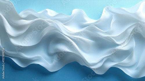 © aritha, Fototapeta premium A smooth, flowing white fabric against a blue background, creating a serene visual effect.