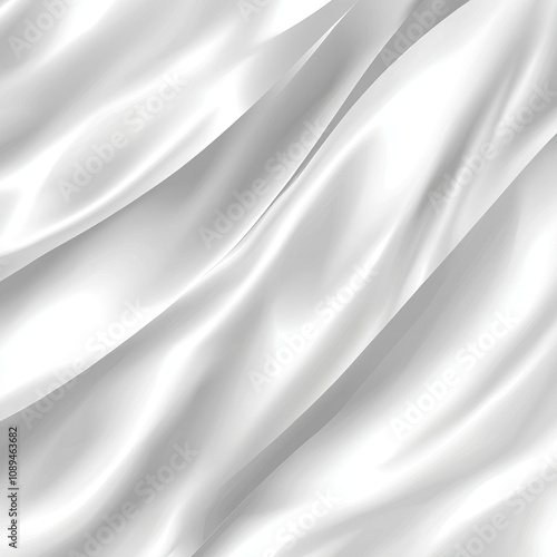 Naklejka premium A smooth, flowing white fabric drapes elegantly, showcasing soft, shimmering...