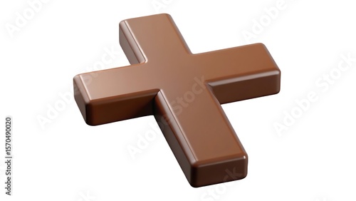 Obraz premium A smooth glossy three dimensional chocolate plus sign symbol isolated on a clean white background isolated on white background