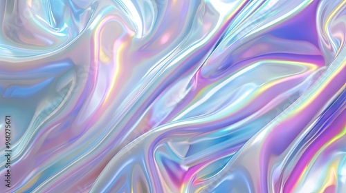 Fototapeta premium A smooth, iridescent surface with flowing patterns in pastel colors, creating...