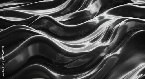 © MrMachyH, Obraz premium A smooth, liquid metallic surface in silver and black, rippling dynamically.