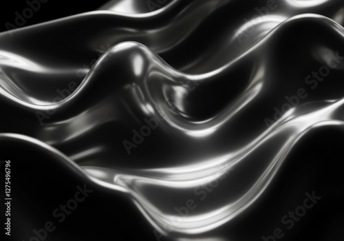 © MrMachyH, Obraz premium A smooth, liquid metallic surface in silver and black, rippling dynamically.