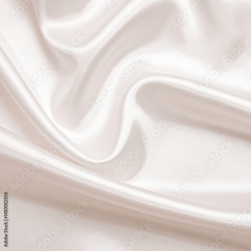 © Natty, Naklejka premium A smooth, luxurious white silk fabric drapes elegantly, showcasing its soft sheen and delicate texture, creating a serene and sophisticated backdrop.
