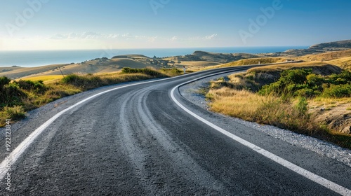 Fototapeta premium A smooth, open road winding through a scenic landscape, representing the...