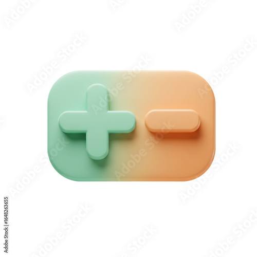 Obraz premium A smooth three-dimensional graphic depicts a plus and minus symbol within a...