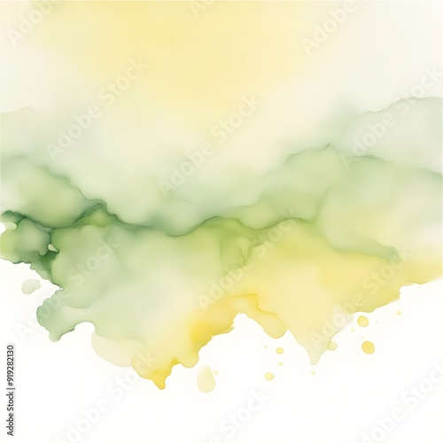 Obraz premium A smooth transition from soft green to pale yellow watercolor on white...