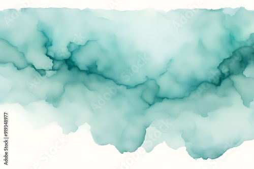 Fototapeta premium A smooth transition from soft teal to light turquoise watercolor on white background, AI generated