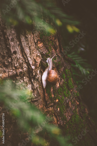© Макс Босацький, Obraz premium a snail crawls along a tree trunk