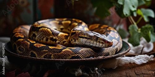 © sam, Obraz premium a snake coiled up in a bowl