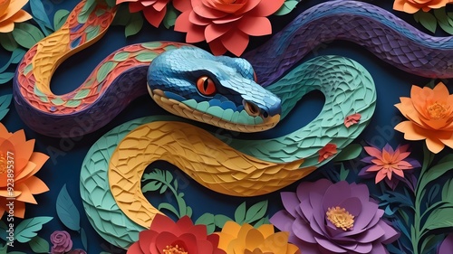 © Fairy Art, Obraz premium A snake colorful paper layers.