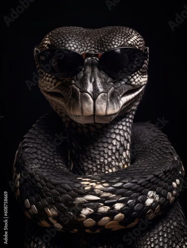 Fototapeta premium A snake cool with black sunglasses. Generative AI