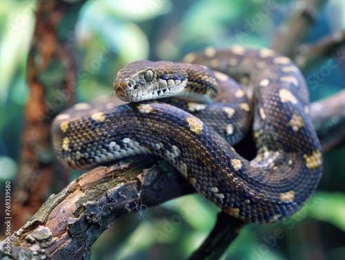 © vefimov, Fototapeta premium A snake is curled up on a branch