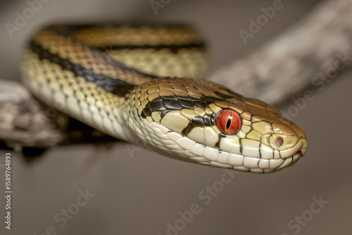 © oybekostanov, Fototapeta premium A snake is on a branch with its head up