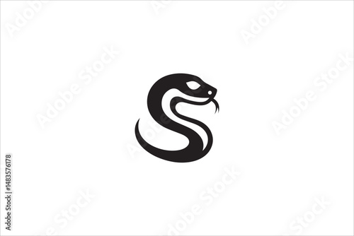 © Rad, Naklejka premium A snake silhouette with a simple, understated design set against a white background Simple black-and-white design