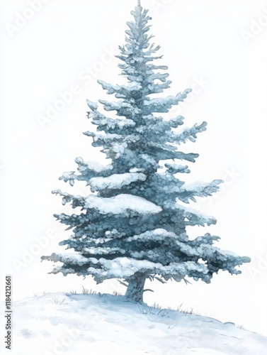 Fototapeta premium A snow covered evergreen tree stands in winter