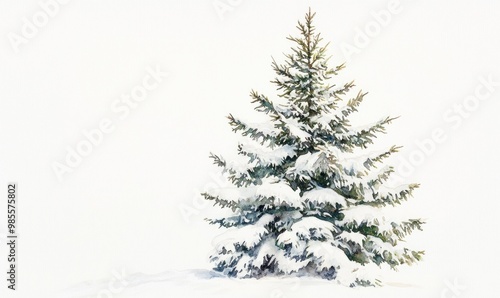 Fototapeta premium A snow covered pine tree stands alone in a field