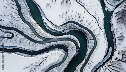 Fototapeta premium A snow-covered wooden bridge illuminated by warm vintage streetlights creates...