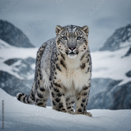 Obraz premium A snow leopard blending perfectly into the icy landscape, almost like a ghost of the mountains.