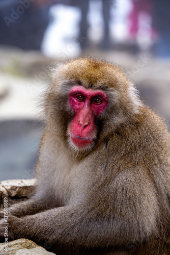 Naklejka premium A Snow Monkey (Japanese Macaque) near a warm spring in Japan.