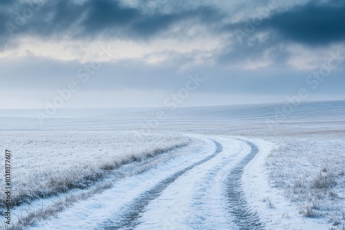 © Thitiwadee, Fototapeta premium A snowstorm sweeping across wide open fields, the blizzard creating a dramatic winter panorama