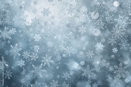 © The 2R Artificiality, Fototapeta premium A snowy backdrop filled with countless snowflakes, perfect for festive stationery.