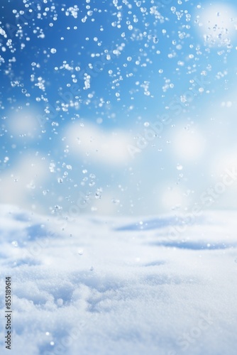 Naklejka premium A snowy ground with a blue sky in the background, perfect for winter scenes...