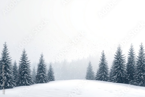 Naklejka premium A snowy landscape with many pine trees covered in snow background outdoors...