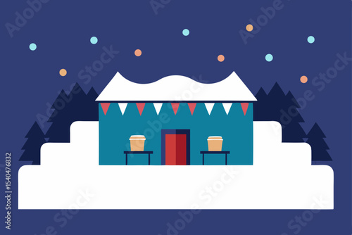 Naklejka premium a snowy rooftop cinema playing a classic christmas