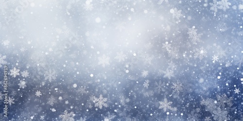 Fototapeta premium A snowy scene with a blue sky and lots of snowflakes. The snowflakes are falling from the sky and covering the ground. The scene has a peaceful and serene mood, as the snowflakes create a calm