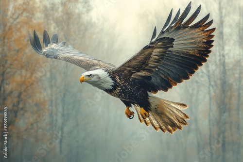 © Natalia, Obraz premium A soaring eagle, isolated on a pastel cream background, representing the courage to rise above challenges,