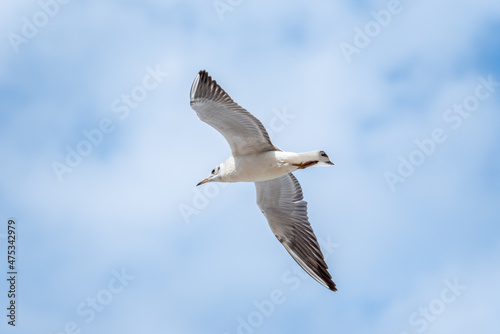 Obraz premium A soaring sea gull against the sky.