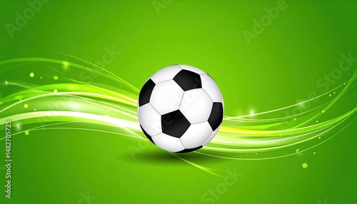 Fototapeta premium A soccer ball illustration against a vibrant green background with glowing streaks