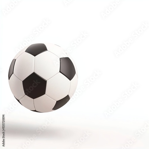 Fototapeta premium A soccer ball in midair, sports equipment, hyperrealistic illustration, dynamic motion and shadow detail, isolated on white background